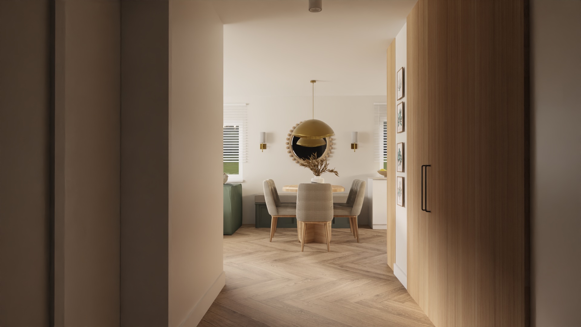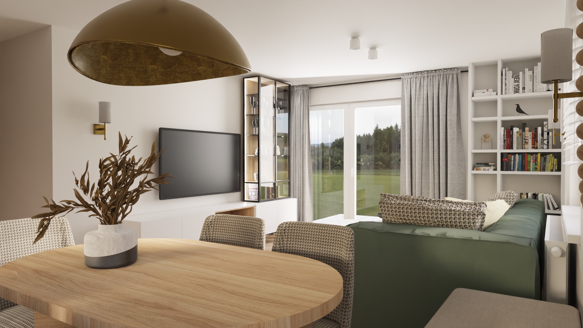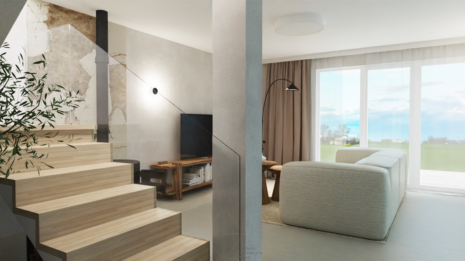 - Model 3D wnętrza uwzględniający konkretne wyposażenie, kolory, materiały i dodatki